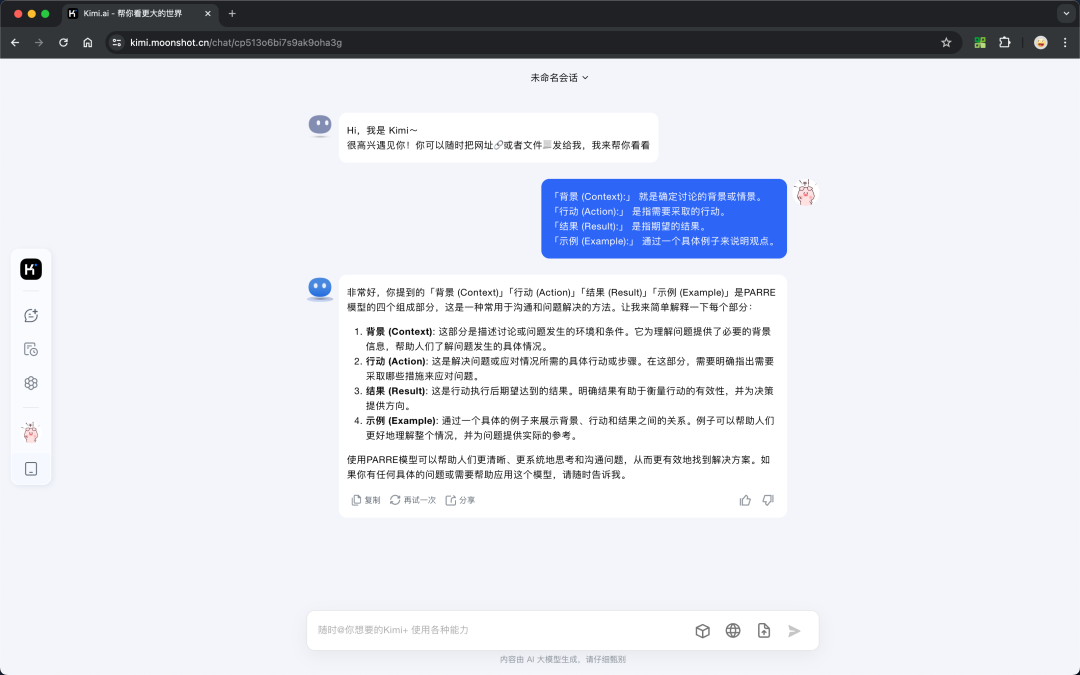 打开ChatGPT或Kimi,复制这些内容放到输入框,按下回车,然后输入你的问题即可。效果同上。SPAR框架: