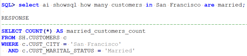 统计旧金山的客户有多少已婚的,并解释统计的逻辑: SQL> select ai explainsql how many customers in San Francisco are married;