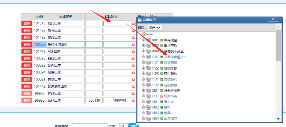 点晴模切ERP其他出入库类别如何绑定对应的科目