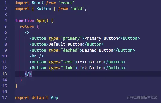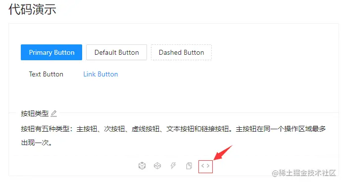 点击左侧的Button选项 点击代码演示的展开代码(如下图所示)