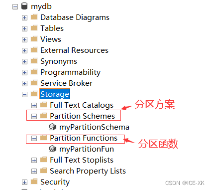 创建好分区方案后,可以在数据库 -> 存ⅲ⊿torage) -> 分区方案(Partition Schemas)中查看