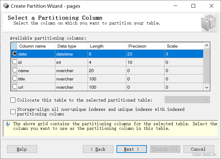右键要分区的表 -> 存储(Storage)-> 创建分区(Create Partition)-> 下一步