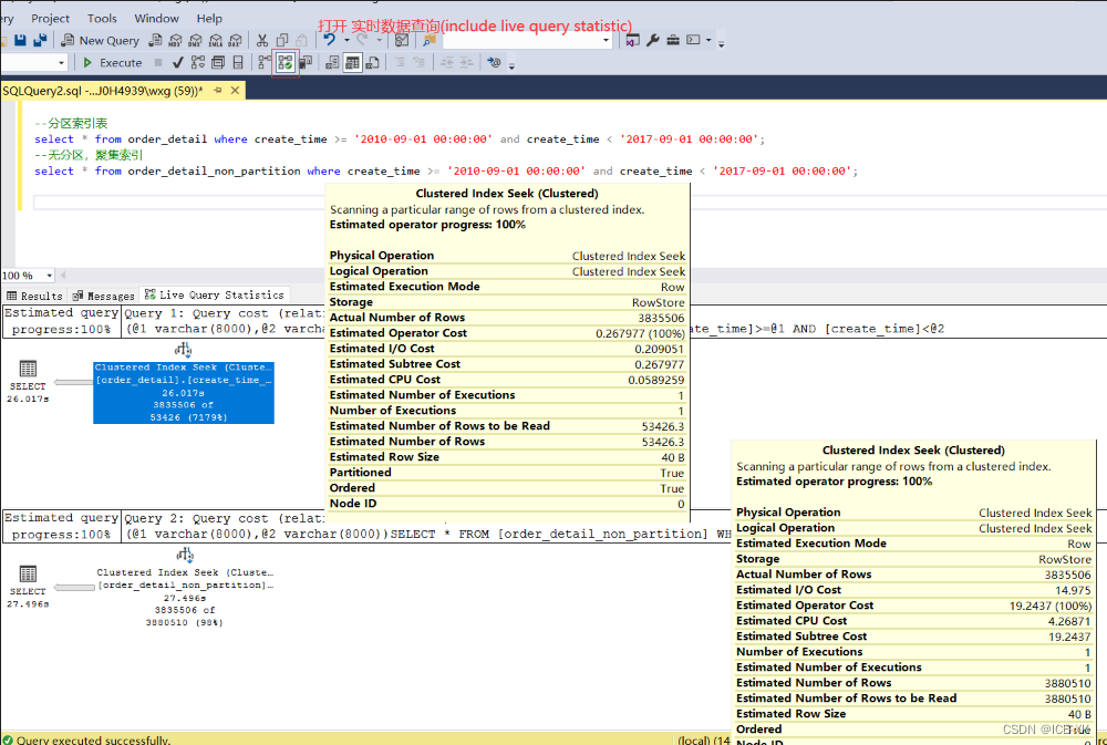 向导创建分区索引的过程也是显示吧旧聚集索引删除,然后再创建一个新的聚集索引并且指定分区方案。