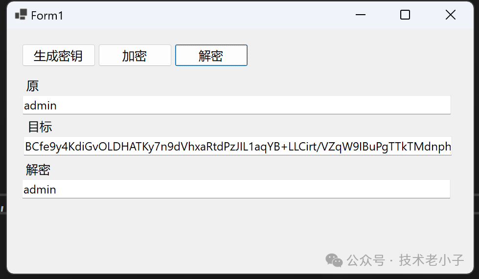 private void btnEncrypt_Click(object sender, EventArgs e) { // 将Base64格式公钥转换回ECPublicKeyParameters var restoredPublicKey = RestorePublicKeyFromBase64(File.ReadAllText("./public.dat")); byte[] cipherText = Encrypt(txt1.Text, restoredPublicKey); txt2.Text = Convert.ToBase64String(cipherText); }