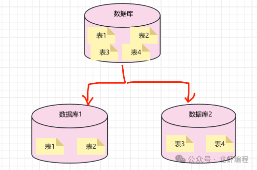也可以将数据切分到不同库的不同表中,如下所示: