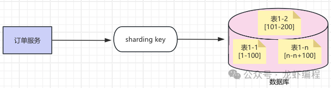 (b)分表的场景:如果单表的数据量很庞大,此时数据库的连接是够用的,但是存储和查询的性能已经成为业务瓶颈,那么就考虑分表。如下图所示的分片: