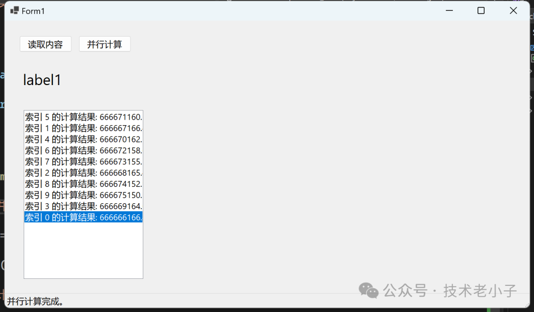 lstResults.Items.Add($"索引 {index} 的计算结果: {result}");
