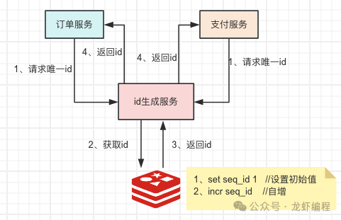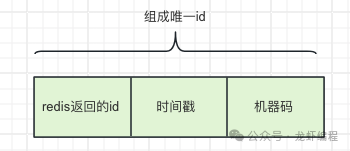 Redis提供的incr自增命令是单线程的操作,可以保证生成的id的唯一并有序的,我们联合如时间戳值、机器标识组成一个具有特殊含义的唯一id,如下图所示: