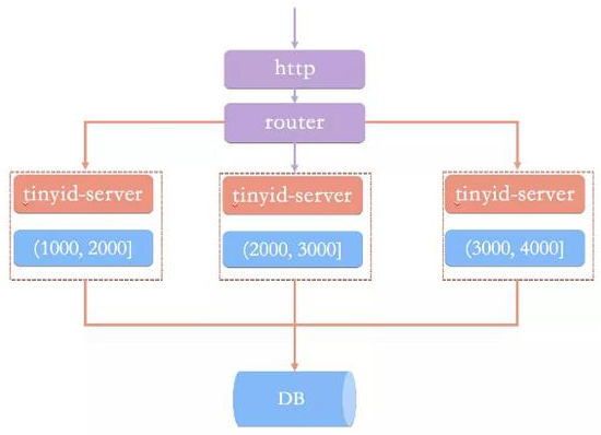 我们根据实际的业务特性来选择合适的ID生成方式。 10、滴滴的Tinyid Tinyid是在美团的ID生成算法Leaf的基础上扩展而来,是基于数据库的号段模式实现的,支持数据库多主节点模式。如下图如下所示: