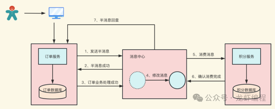以订单成功之后扣减库存为例,通过记录一条扣减库存的记录和发送一条消息来保证两个服务之间数据的最终一致性。 (1)优点:实现逻辑简单,开发量小 (2)缺点:与业务强耦合;占用业务系统资源;业务使用场景有限 2、RocketMQ事务消息