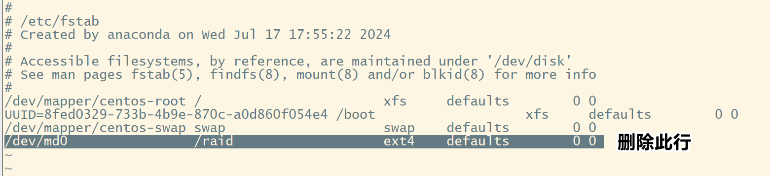 首先,删除掉/etc/fstab文件中相关的挂载内容