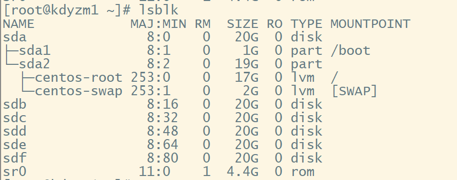 这时候再用lsblk命令查看,可以发现和以前的普通分区有所不同