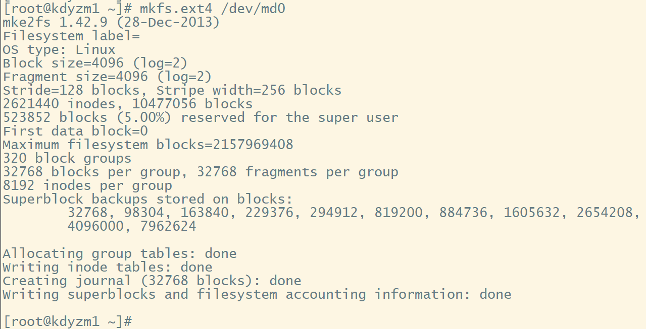 mkfs.ext4 /dev/md0