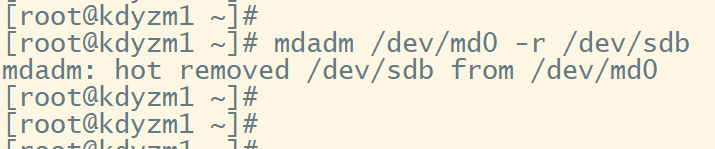 首先,我们假设/dev/sdb这块硬盘坏了,需要先将这块硬盘标志为不可用