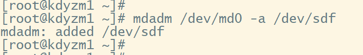 接下来我们添加一块新硬盘/dev/sdf,替换掉坏掉的/dev/sdb,使用命令-a将其添加到磁盘阵列中