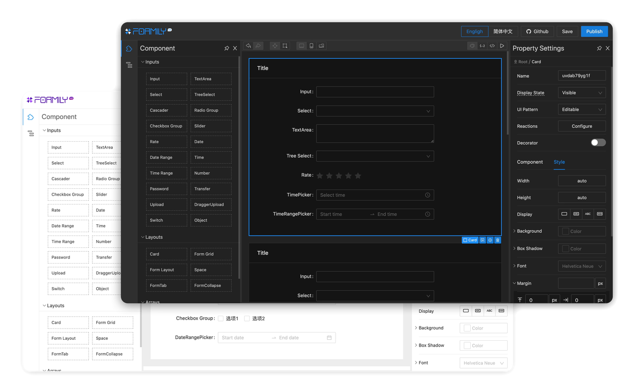 简介: Formily 是一个专注于性能的表单库,它支持 React 和 Vue,并通过 JSON Schema 实现表单的动态生成。 特点: