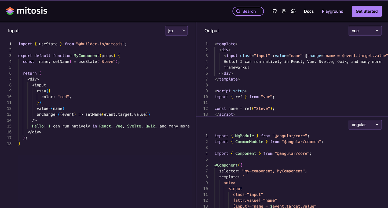 简介: Mitosis 是一个开发工具,允许开发者编写一次组件代码,然后在多种前端框架中运行,如 React, Vue, Angular 等。 特点: