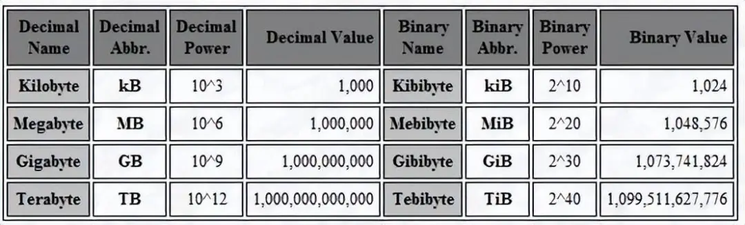 同时,大家特别习惯用GB或者MB来描述一个磁盘的大小。这个叫做Gigabyte或者Megabyte。 但描述文件大小(或者讨论磁盘空间)的时候,我们通常还会用GiB或者MiB来描述。