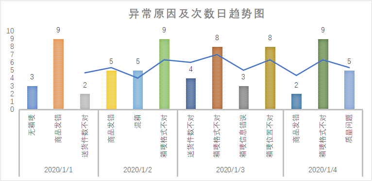 收货是货物进入仓库的第一环节,因此做好收货异常管理尤其重要。减少收货异常、能够提高货物的入库效率,同时降低收货异常问题对后续库内其他作业流程的影响。 做好收货异常管理,首先要学会对异常原因进行分类分析,常见的异常有以下四种: 1、送货件数差异有多件、少件、错件三种情况。 2、箱唛问题多见为:无箱唛、箱唛不规范、箱唛信息错误、箱唛位置不对等。 3、装箱差异:一方面是装箱数量的差异(多货或少货),另一方面是没有装箱单或装箱单与实际内箱商品不一致。 4、质量问题:先判断是批量质量问题还是个别商品质量问题;而质量问题的原因跟产品类型息息相关。 例如外表磨损、脏污;电器类商品不通电、服装类商品开线、功能型商品功能不健全等等。 完善的异常原因分析,离不开异常问题的统计;问题统计看似是一项繁琐枯燥的工作,但其背后的统计维度以及分析逻辑对异常管理意义重大。 下面跟大家分一下常用的几种收货异常统计方式: 1.收货差异类型统计 针对件数差异、箱唛差异、装箱差异、质量差异制定的《收货差异统计表》,明确记录每一项差异明细。 2.收货异常数据日趋图 对比每日的收货件数、异常件数及异常次数,作为仓库管理者的管理类图表之一,快速掌握每日收货异常情况,并关注异常问题是否逐日改善。 3.异常原因及次数日趋势图 此表可以直接反应出异常原因的占比情况,有利于仓库针对性的做出改善策略,并可以直观跟踪改善措施执行后,对应的异常问题是否有所改观。 4.重点供应商统计 针对供应商出现的异常问题次数进行统计,关注哪些供应商经常出现问题,重点跟踪改进情况。 除了学会收货异常问题的统计及分类以外,更为关键的是异常改善策略的制定及实施。改善策略主抓以下两个方向: 1.仓库内部流程优化:例如质检标准、箱唛格式及张贴规范、装箱标准、收货流程等。 2.供应商等级评估:仓库对供应商的评估主要涉及送货及时率、送货准确率、质量合格率、以及紧急情况下的配合度。 掌握以上收货异常的统计、分析、改善方法,可以有效界定供应商到货情况异常责任归属,对仓库的库存管理上也能减少货损、丢货、少货现场的发生;降低公司物流风险。 该文章在 2024/7/24 9:06:27 编辑过 |