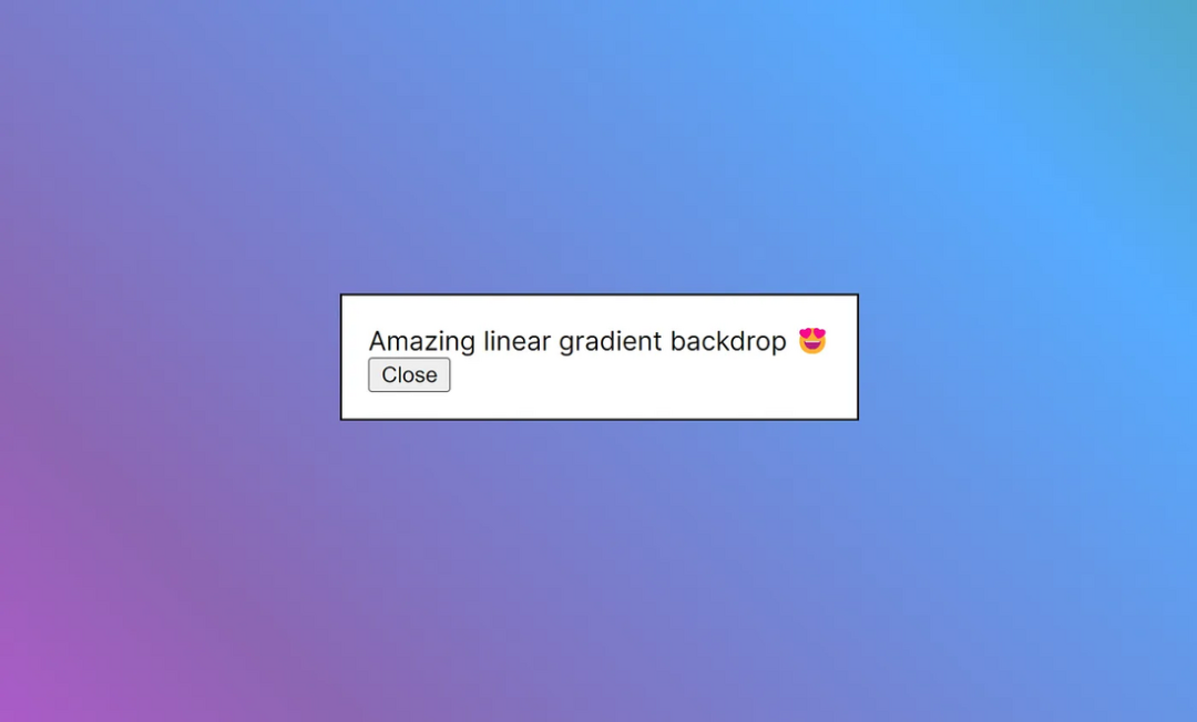 <dialog> 有一个特殊的 ::backdrop 伪元素,用于设计背景墙的样式: