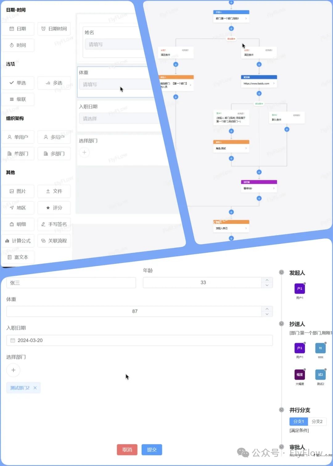 FlyFlow借鉴了钉钉与飞书的界面设计理念,致力于打造一款用户友好、快速上手的工作流程工具。相较于传统的基于BPMN.js的工作流引擎,我们提供的解决方案显著简化了操作逻辑,使得用户能够在极短的时间内构建定制化的业务流程,即便是不具备深厚技术背景的普通用户也能迅速掌握,实现零门槛的高效工作流配置。 官网地址:www.flyflow.cc Element Plus版本演示地址:pro.flyflow.cc Ant Design版本演示地址:ant.flyflow.cc 该文章在 2024/7/24 23:27:29 编辑过 |