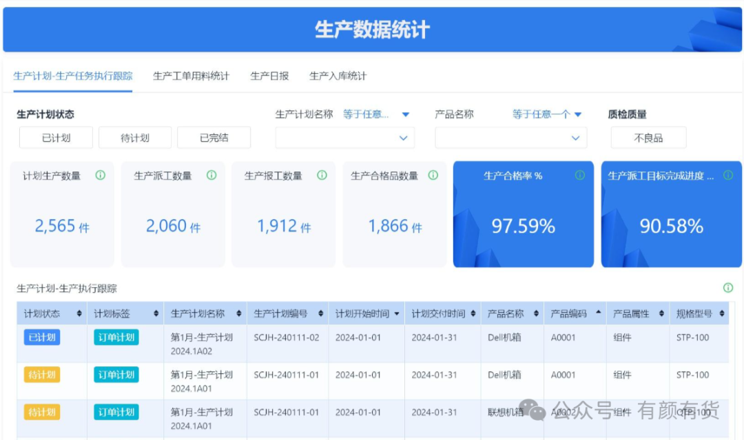 (2)计划管理 计划管理是指对生产进行规划、监控和协调的管理过程,包括生产计划制定、人员分配和进度监控等内容,以确保生产计划能够按时、按量、按质地执行。
