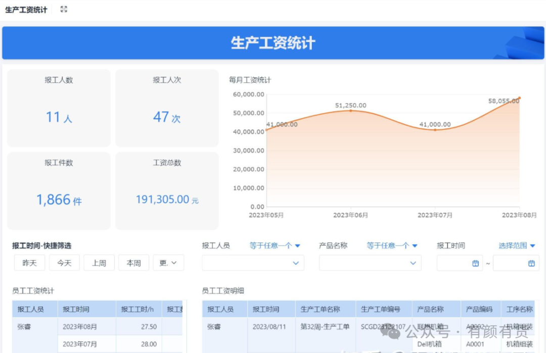 人(Man):制造过程中的操作人员,即对人员的技能要求和工作安排。 机(Machine):机器设备、工具等辅助制造工具,即对设备、工装夹具的要求。 料(Material):原材料的选择,即制造过程中所需物料的质量与适用性; 法(Method):生产过程中必须遵守的规则和标准,即生产标准、操作规范、设备选择、使用方法等; 环(Environment):制造环境,即制造过程中所处的温度、压力、湿度等外在条件。 这五个关键因素统称为“4M1E”。有时,人们还会加入一个“测”(Measure),形成“5M1E”。 以上概念突出了影响制造业的五个主要因素,而通过实施MES(Manufacturing Execution System,制造执行系统)系统,企业能够实时监控和管理这些关键因素,确保产品质量,并能够快速适应不断变化的环境条件。 MES系统的开发便是针对制造型企业的生产运营与生产管理而服务的。它是一种集成了计划管理、生产管理、库存管理、质量管理等核心管理模块的系统。通过实施MES系统,企业能够实现生产过程的实时监控、生产数据的实时采集和分析,以及生产任务的动态调整,从而提高生产效率、降低生产成本、保证产品质量,并提升企业的市场竞争力。 二、MES系统的功能 1、MES系统的核心功能(必须要有) MES系统的核心功能是指MES系统能够为企业提供的最基本的管理功能,需要涵盖最基本的生产管理要素,包括生产管理、计划管理、技术管理、库存管理等。这些功能构成了MES系统运行的基础,旨在助力企业高效执行生产计划,合理分配资源,从而提升生产效率与质量,减少成本支出,并增强企业的市场竞争力。 (1)生产管理 生产管理涉及对制造业生产流程的全方位协调、规划、控制、监督和持续优化。这一过程至关重要,因为它确保了生产活动能够高效、有序地进行,同时满足质量与成本目标。 生产业务流程管理:从记录生产工单、生产领料、生产退单,到生产报工、生产入库,确保生产流程的每个环节都能得到有效的规划和控制,使得生产活动更加标准化和自动化。 生产数据统计:对生产过程中产生的各种数据进行采集、存储、分析和处理,提升生产过程的可视化和透明度,从而支持管理层做出更加明智的决策,并不断优化生产流程。 员工工资统计:除了生产数据的监控,MES系统还能够记录员工的报工时间、报工次数和质量表现等,为员工工资的计算提供数据支持。通过自动化员工工资统计,不仅可以减少人为错误,提高工资发放的准确性,还能为企业提供员工绩效分析的依据,从而激励员工提高工作效率和质量。 (2)计划管理 计划管理是指对生产进行规划、监控和协调的管理过程,包括生产计划制定、人员分配和进度监控等内容,以确保生产计划能够按时、按量、按质地执行。 生产计划制定:记录销售订单信息、生产计划信息、生产计划明细、生产任务明细以及关联的生产工单、委外工单、装配工单等执行数据。 生产计划看板:对生产计划相关的数据进行统计与分析,查询计划数量、计划生产任务量以及计划明细数据。 生产执行跟踪:对生产计划完成情况进行实时的监控与查询。 生产用料统计:对生产过程中所使用的原材料、零部件或其他相关物料的数量和用途进行汇总、分析及预测。 (3)技术管理 技术管理覆盖了产品从设计、研发、生产到维护的整个过程,是对企业技术资产和整个产品生命周期进行全面跟踪和管理的过程。其核心目标在于确保企业能够高效地管理和利用技术资源,不断提升生产效率、产品质量和创新能力。 产品信息:记录有关产品名称、类型、规格型号、售价等所有的相关信息。 产品工序:记录生产工序的名称、班组、质检员等相关信息。 产品BOM:产品BOM是指一份产品物料清单,列出了制造一个产品所需的所有零部件、原材料和组件。 (4)库存管理 库存管理是一项关键的物流管理活动,它涉及对企业的库存商品进行有效的监控、控制和优化。库存管理的目标是确保企业在满足客户需求的同时,最大限度地减少库存成本和提高库存周转率。 仓库管理:记录每一处仓库和仓位的名称、编码、地址、容量、状态等数据。 其他出入库:管理货物或原材料等物资的流向,记录对于非采购、生产和销售活动导致的物资增加情况(如归还、报废等)。 库存调拨:记录库存调拨的基本信息、调出仓信息、调入仓信息以及调拨产品信息。 库存盘点:在对企业所有库存物品进行清点和核对时,记录盘点的类型、起止时间、盘点员等和所盘点的产品明细。 2、MES系统的应变能力——有了更好 MES系统的应变能力是指MES系统的适应性和灵活性,能否满足企业的不同需求和变化。有这些功能的MES系统通常会更强大,适用性更强,体验感更好。 (1)委外管理 当企业需要委托外部厂商或合作伙伴进行生产时,对委外生产流程进行全方位的管理和追踪。 (2)自定义能力 具备强大自定义能力的MES系统能够依据企业的规模、所处行业、产品类型、生产工艺等多种特点进行深度定制和个性化设计。定制化与个性化搭建可以帮助企业实现MES系统与企业的有机结合,提升系统的适用性和效能,助力企业实现运营优化和竞争优势。 自定义产品工艺路线:支持自定义产品加工的顺序步骤、多个工序的序列。录入生产工单时,自动生成工序明细。 生产工单自定义设计:支持甘特图展示生产计划,可自由拖拽自动更新工单计划,实现生产排产。
