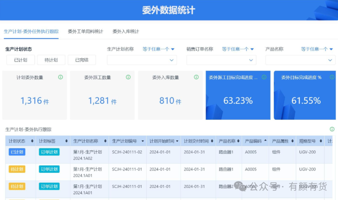 2、MES系统的应变能力——有了更好 MES系统的应变能力是指MES系统的适应性和灵活性,能否满足企业的不同需求和变化。有这些功能的MES系统通常会更强大,适用性更强,体验感更好。 (1)委外管理 当企业需要委托外部厂商或合作伙伴进行生产时,对委外生产流程进行全方位的管理和追踪。 (2)自定义能力 具备强大自定义能力的MES系统能够依据企业的规模、所处行业、产品类型、生产工艺等多种特点进行深度定制和个性化设计。定制化与个性化搭建可以帮助企业实现MES系统与企业的有机结合,提升系统的适用性和效能,助力企业实现运营优化和竞争优势。