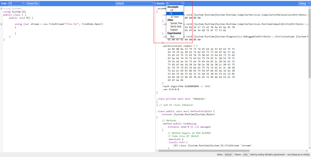 SharpLab:.Net反编译工具,方便实时查看反编译后的代码!