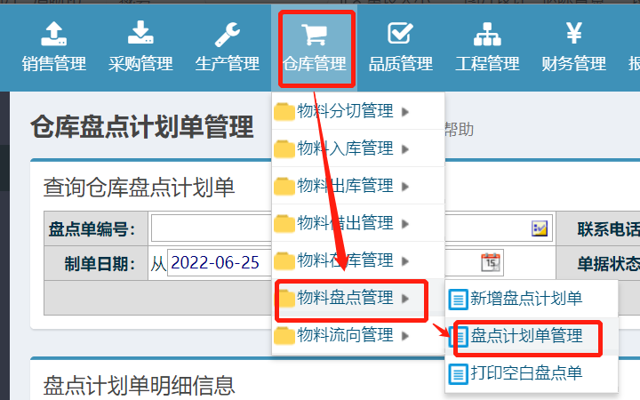 ![]() ![]() 首先进入盘点计划单管理,点击进入即可 如下图: