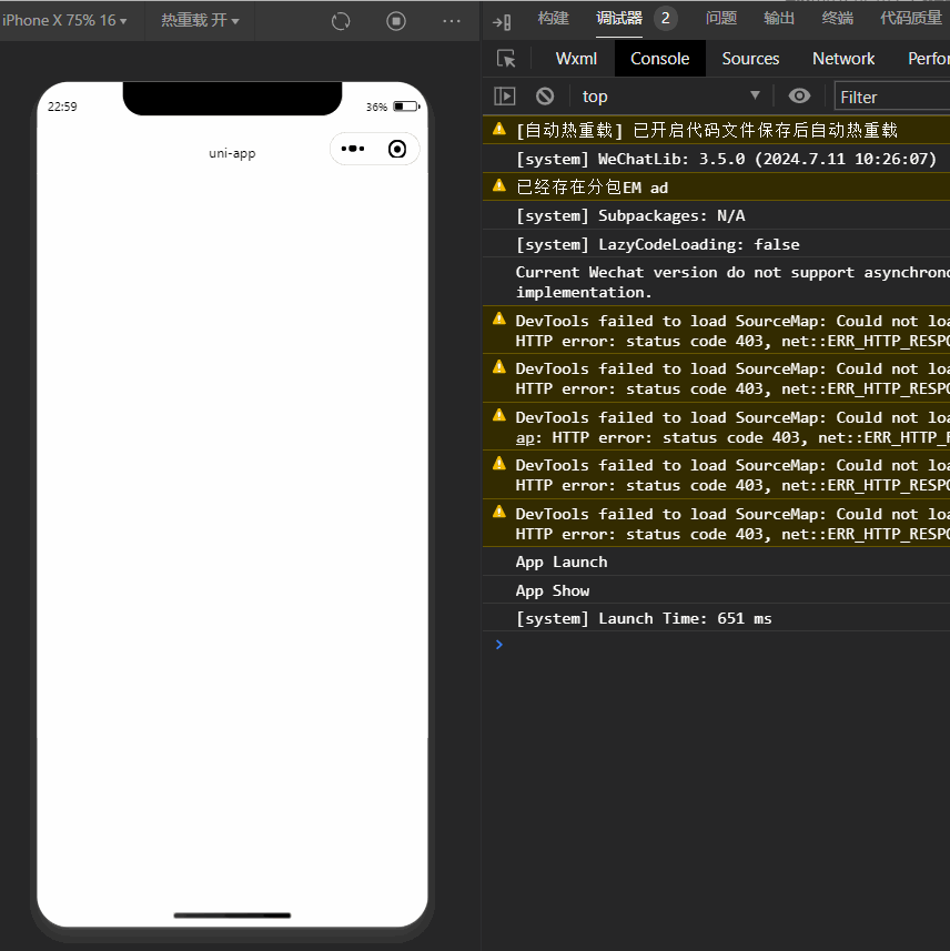 02. 在 uniapp 项目源码视图的微信小程序代码中添加如下: