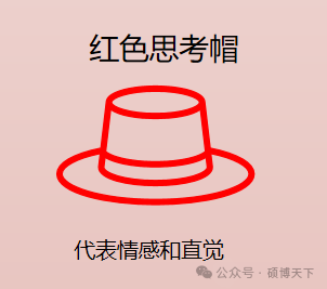 代表情感和直觉。红色思考帽让人们自由地表达自己的情绪、感受、直觉和预感。在团队讨论中,它有助于促进情感交流,增进理解。