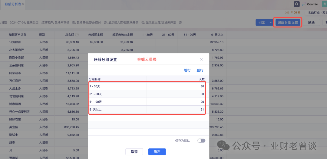 常见的ERP都有账龄统计功能,可以自动计算出账龄,如金蝶的星空、星辰,用友的BIP,还支持账龄分组,可直接查询或导出,如下图:坏账准备计提
