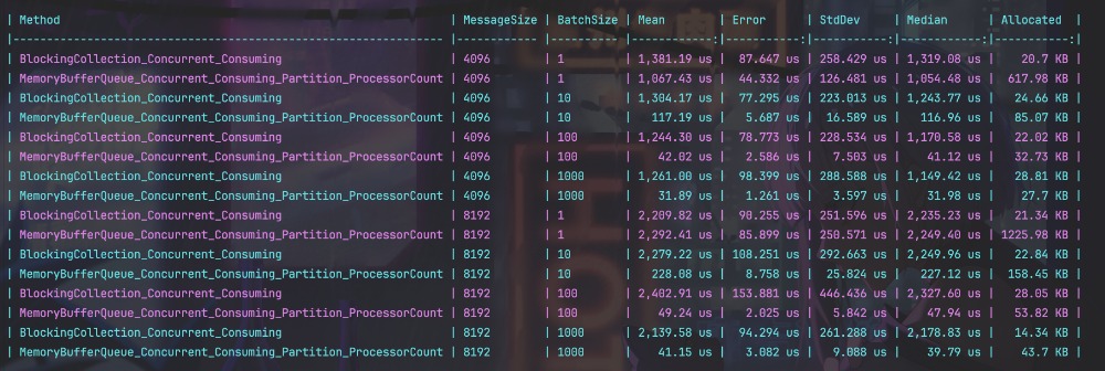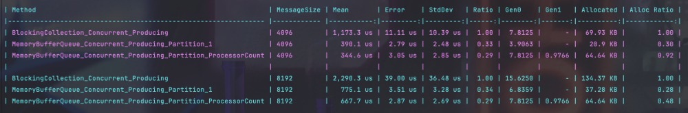 在并发写入时,BufferQueue 的写入性能明显优于 BlockingCollection。