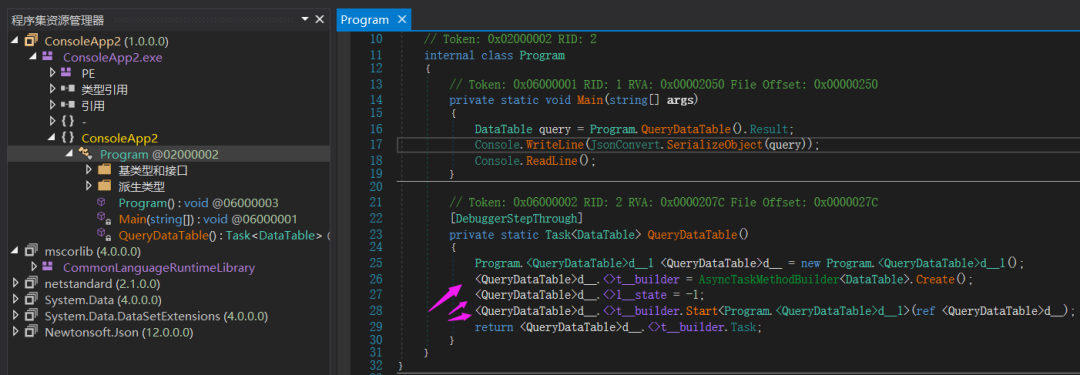 Assembled method ConsoleApp2.Program?<QueryDataTable>d__1::MoveNext