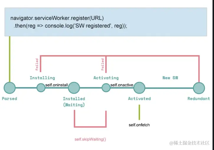 self.addEventListener('install', function(event) { // 监听 Service Worker 的安装事件