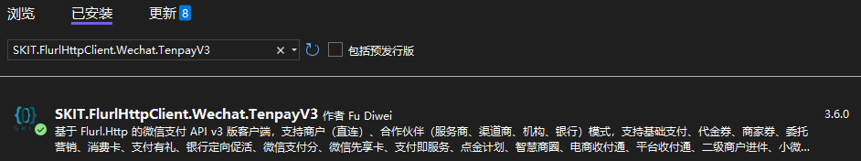 NuGet 简介地址:https://www.nuget.org/packages/SKIT.FlurlHttpClient.Wechat.TenpayV3