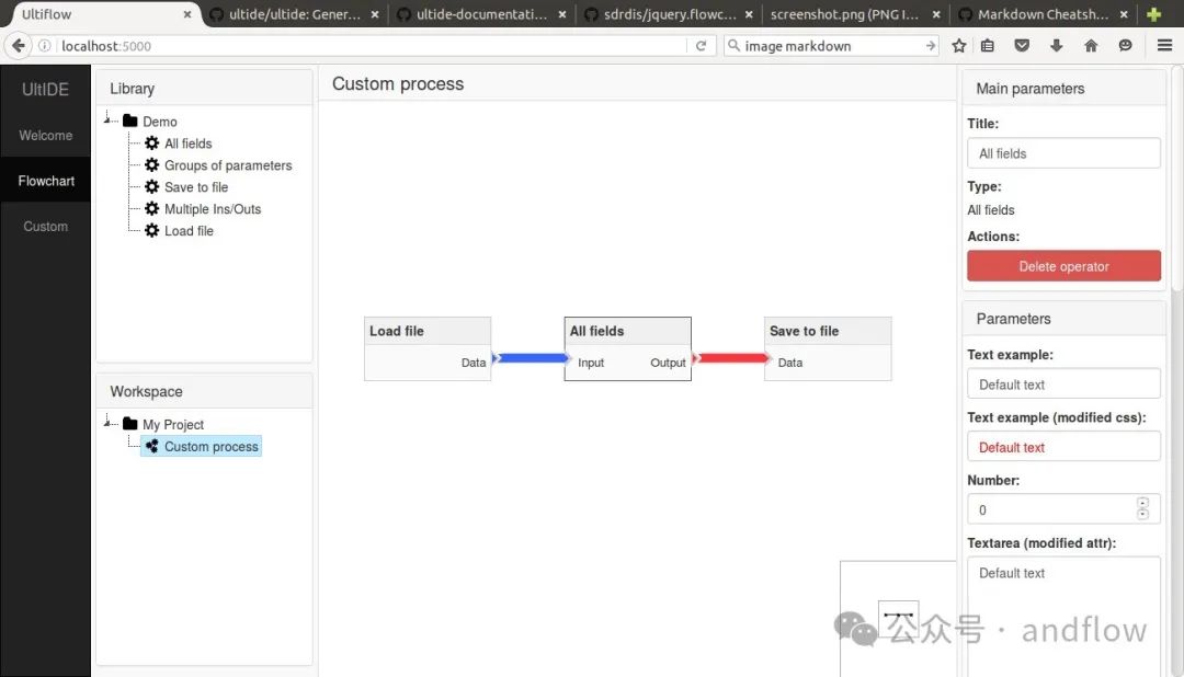 • 提供了方法,以便最终用户可以通过添加/移动/删除操作符,创建/删除它们之间的连接来编辑流程图。