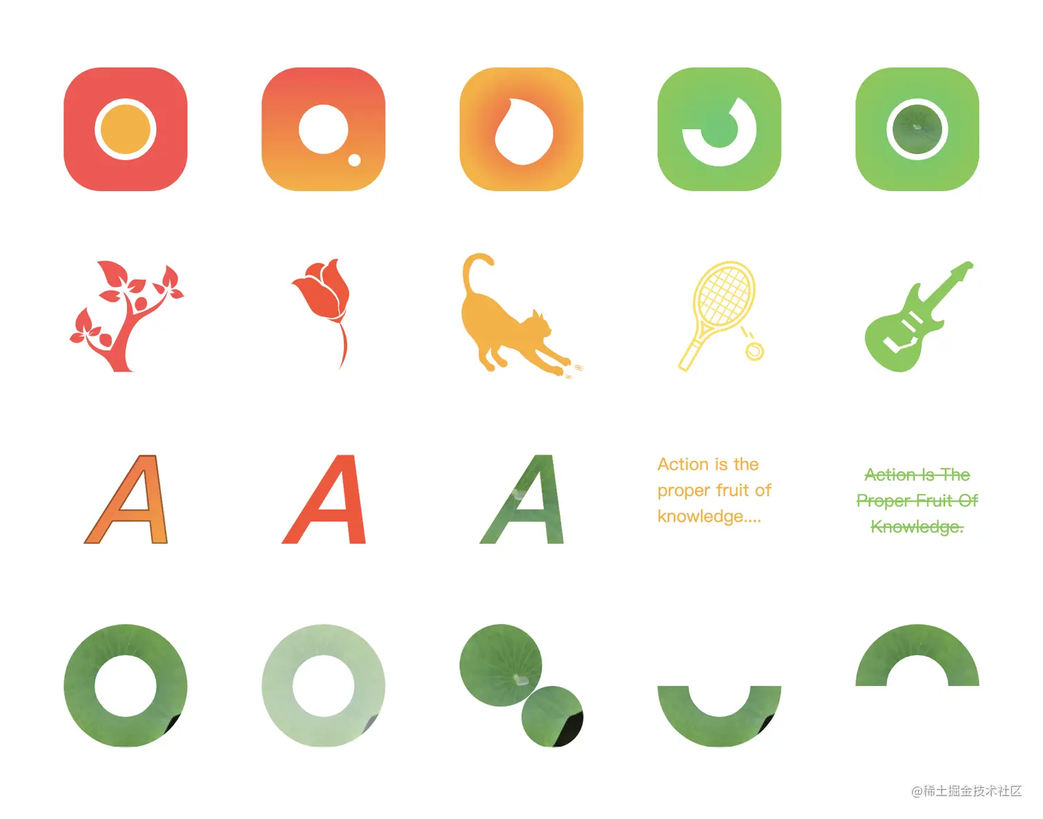 丰富表现力,简洁易用的 APILeaferJS 引擎拥有丰富的表现力,包括各种渐变、图案填充、内外阴影、模糊、 遮罩、裁剪、路径转换等特性。我们经过反复推敲和打磨,提供了简洁易用的 API,让开发者能够用最少的代码实现功能。