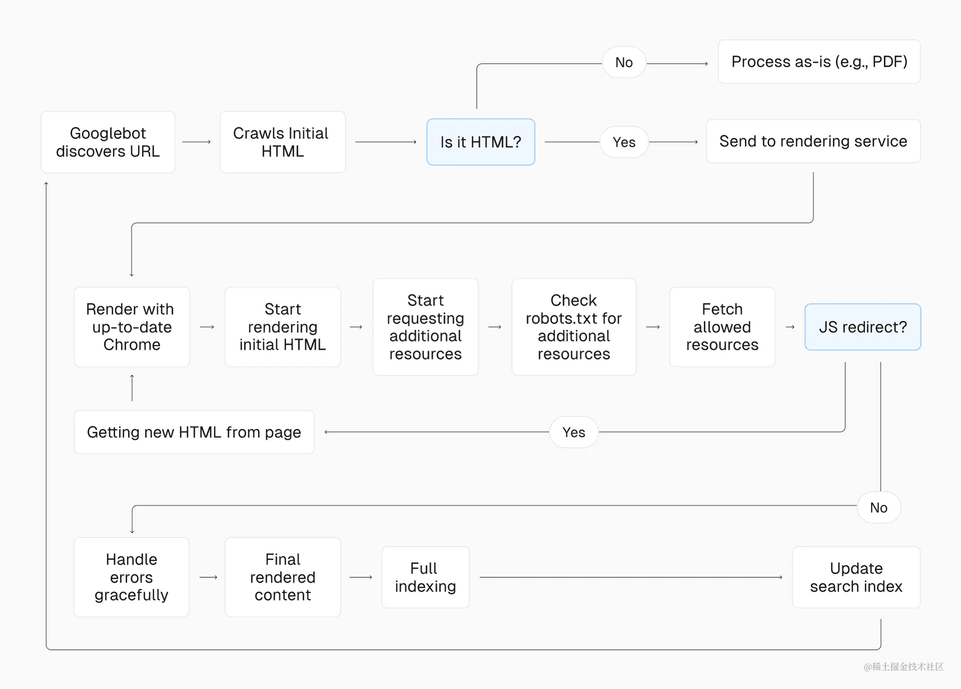 **渲染性能和抓取预算:**虽然 Google 可以有效地渲染 JS 密集的页面,但与静态 HTML 相比,该过程对你和 Google 来说都更加耗费资源。对于大型网站(10,000+ 个独特且经常更改的页面),这可能会影响网站的抓取预算。优化应用程序性能并最小化不必要的 JS 有助于加快渲染过程,提高抓取效率,并可能允许抓取、呈现和索引更多页面。