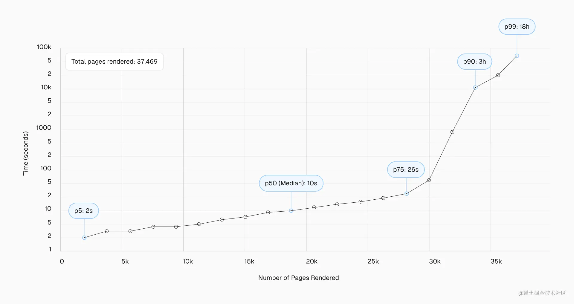 虽然有些页面面临严重的延迟(在第 99 个百分位长达 ~18 小时),但这些都是例外,而不是规则。