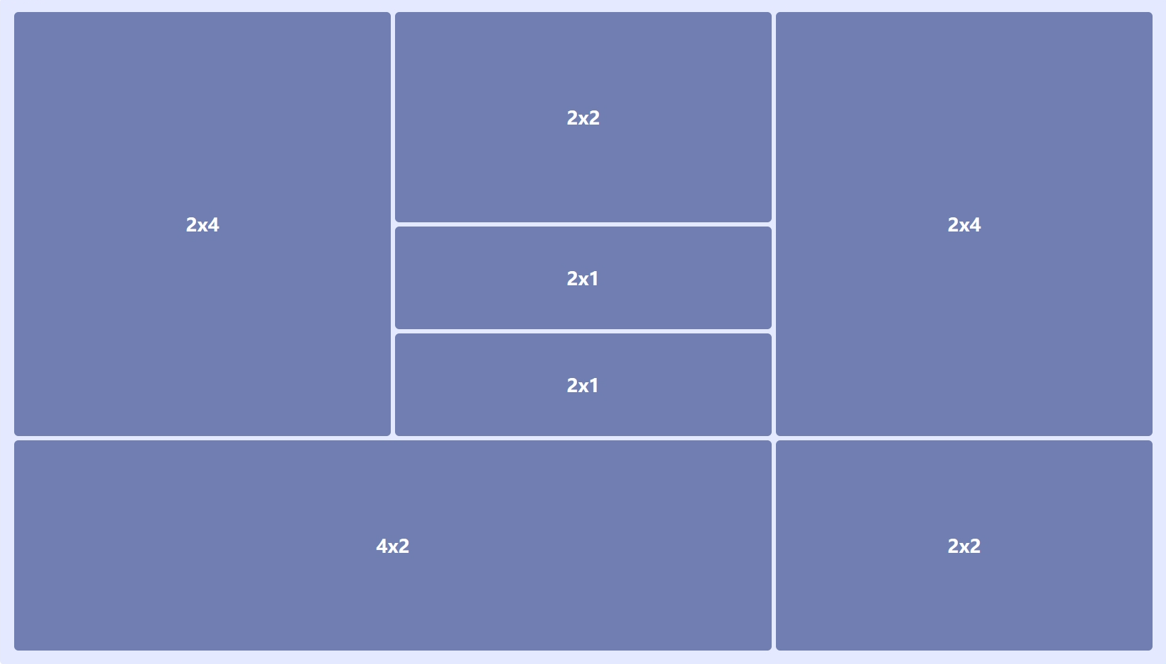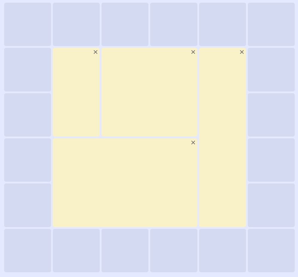 grid-area: `${y + 1} / ${x + 1} / ${y + row + 1}/ ${ x + column + 1 }`