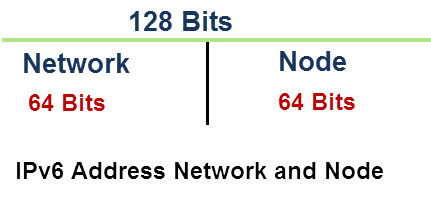 该地址被分成 2 个64 位段,高 64 位为网络部分,低 64 位为节点部分: