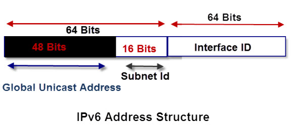 高48 位用于全球网络地址并用于通过互联网进行路由。