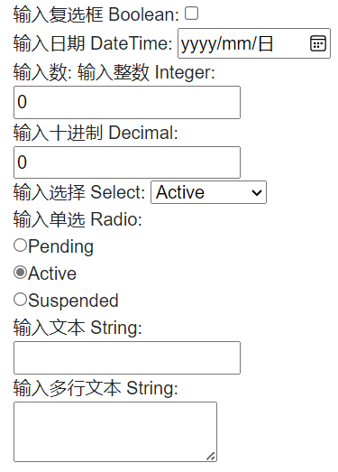下面是一个标准输入组件使用示例,都比较简单就不再单独介绍: