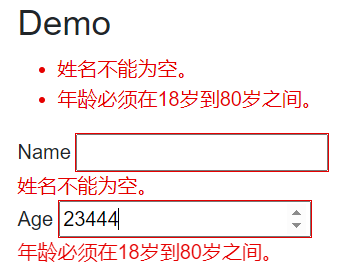 //指定属性的有效值范围(从 18 到 80),还提供适合向用户显示的错误消息