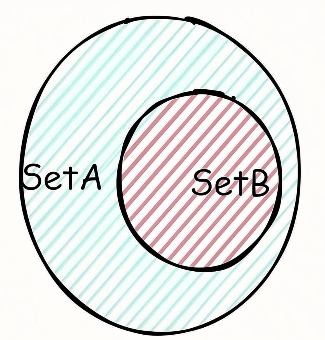 isSubsetOf() 方法返回一个布尔值,用于指示此集合中的所有元素是否都包含在给定的集合中。例如:
