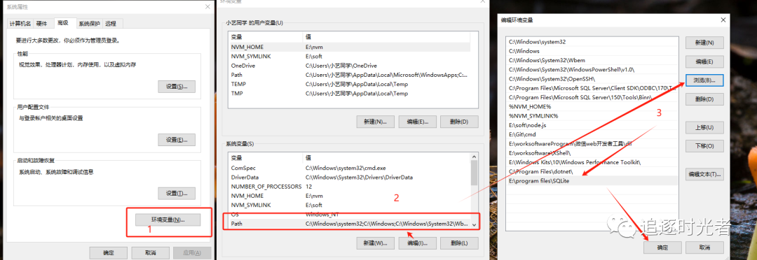 - 我的电脑右击=>属性=>高级系统设置=>高级=>环境变量=>系统变量=>Path=>编辑,将SQLite地址文件夹地址添加进去;
