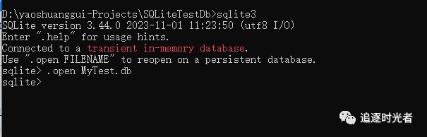 输入以下命令来创建一个新的数据库文件(例如MyTest.db):