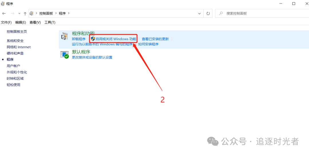 1、打开控制面板=>程序=>启动或关闭Windows功能